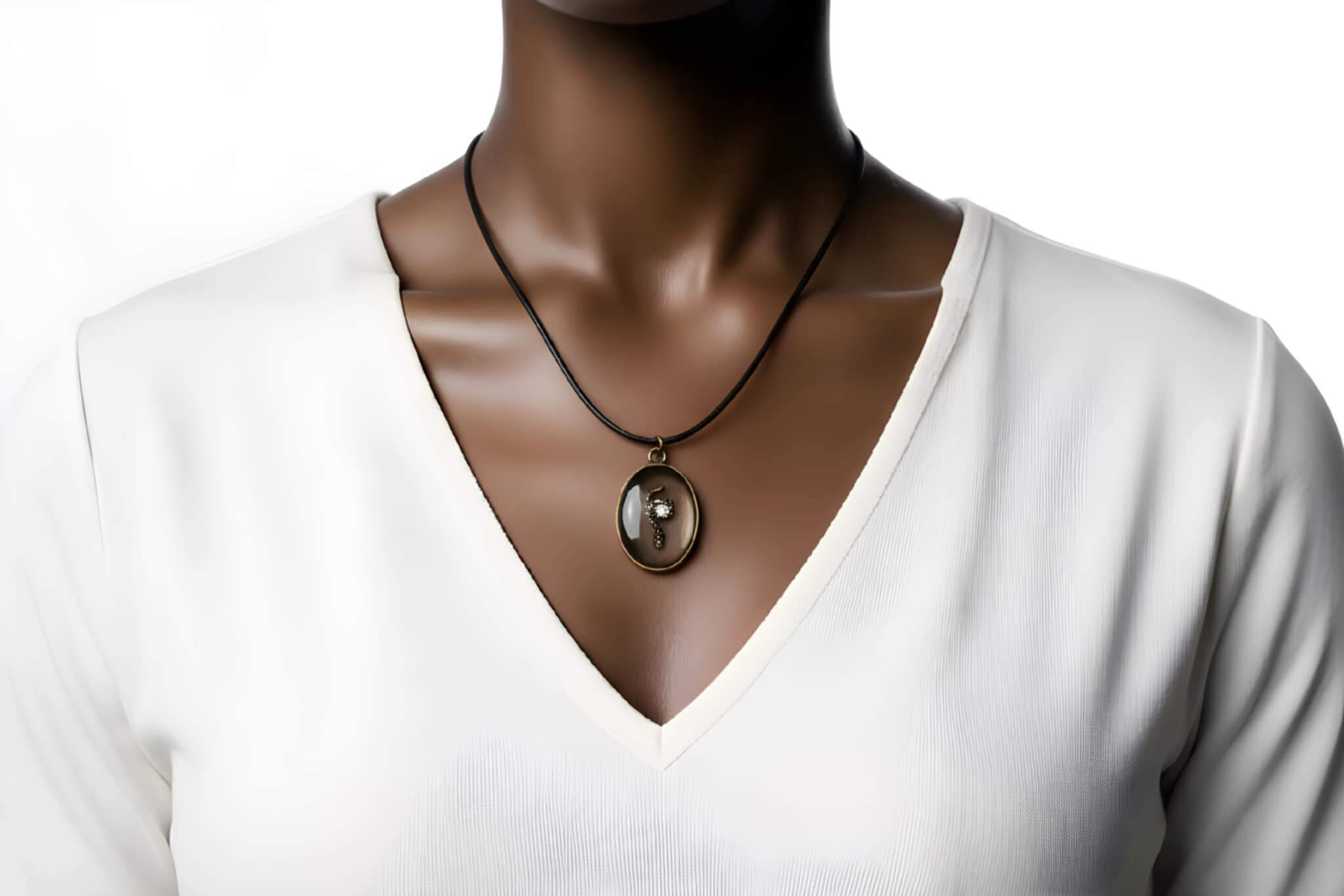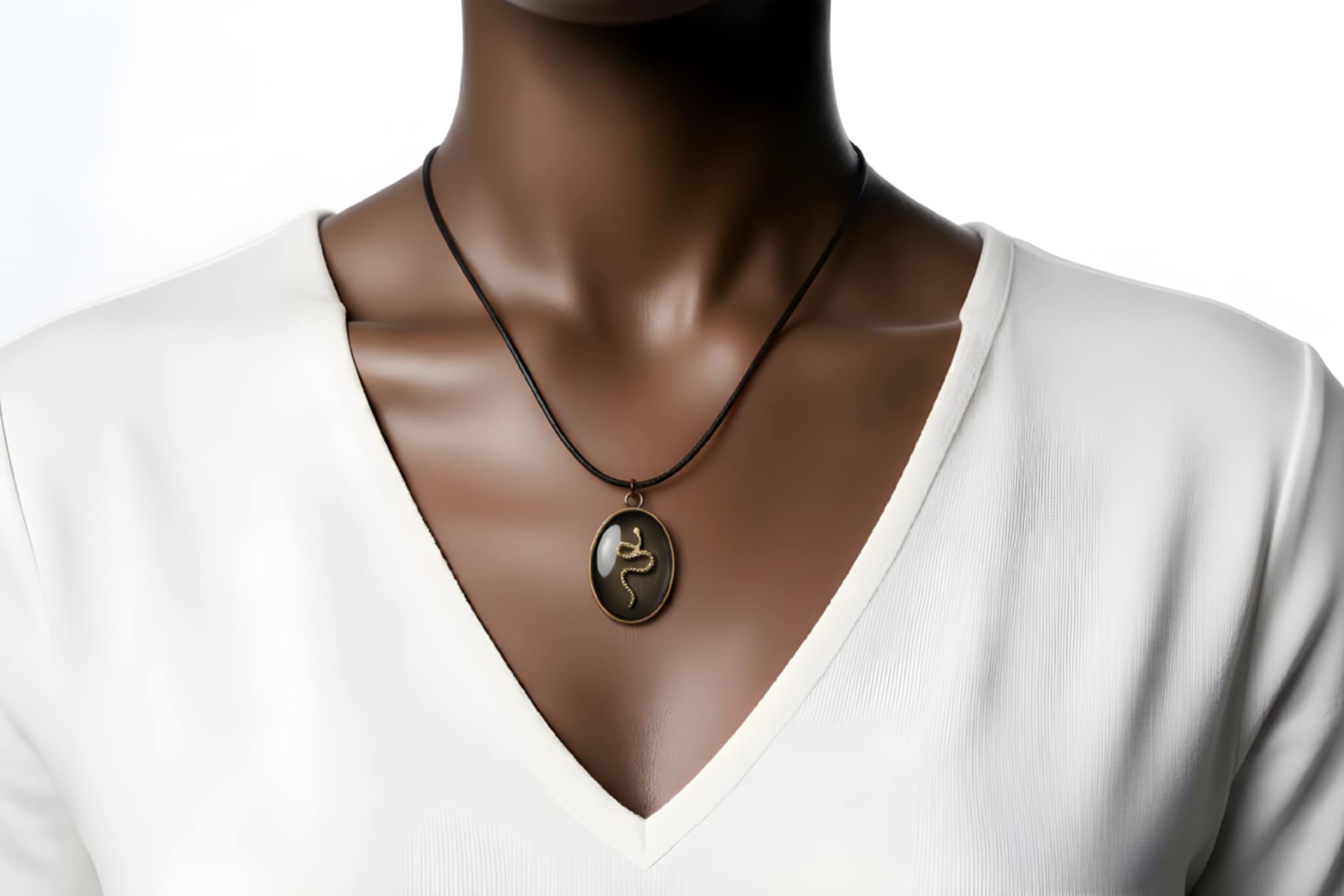 Deze handgemaakte ketting met slang in de hanger staat symbool voor kracht, transformatie en wijsheid. De ovale uv-resin hanger heeft een diepe, warme uitstraling en hangt aan een comfortabele zwarte koordketting. Een tijdloos en betekenisvol sieraad dat elke outfit een mystiek accent geeft. De ketting is een zwart kunstleren koord met metalen gesp van ongeveer 46cm lang en heeft een…