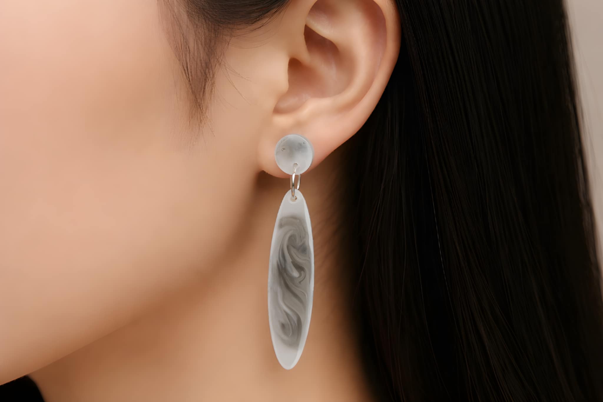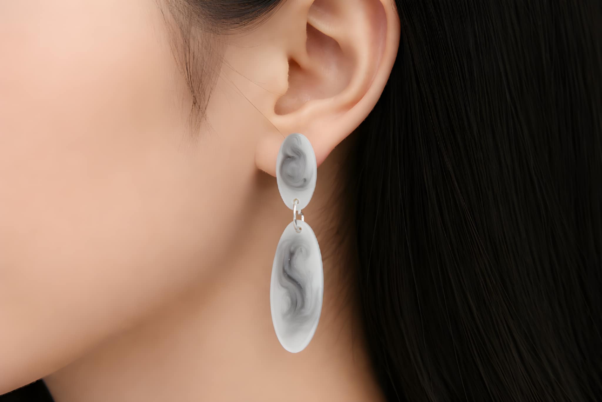 Minimalistische, lichtgewicht oorbellen met een zachte marmerlook in grijs-wit. Met de hand gemaakt van UV-resin, uniek in vorm en patroon. Tijdloos, elegant en perfect voor elke dag ✨