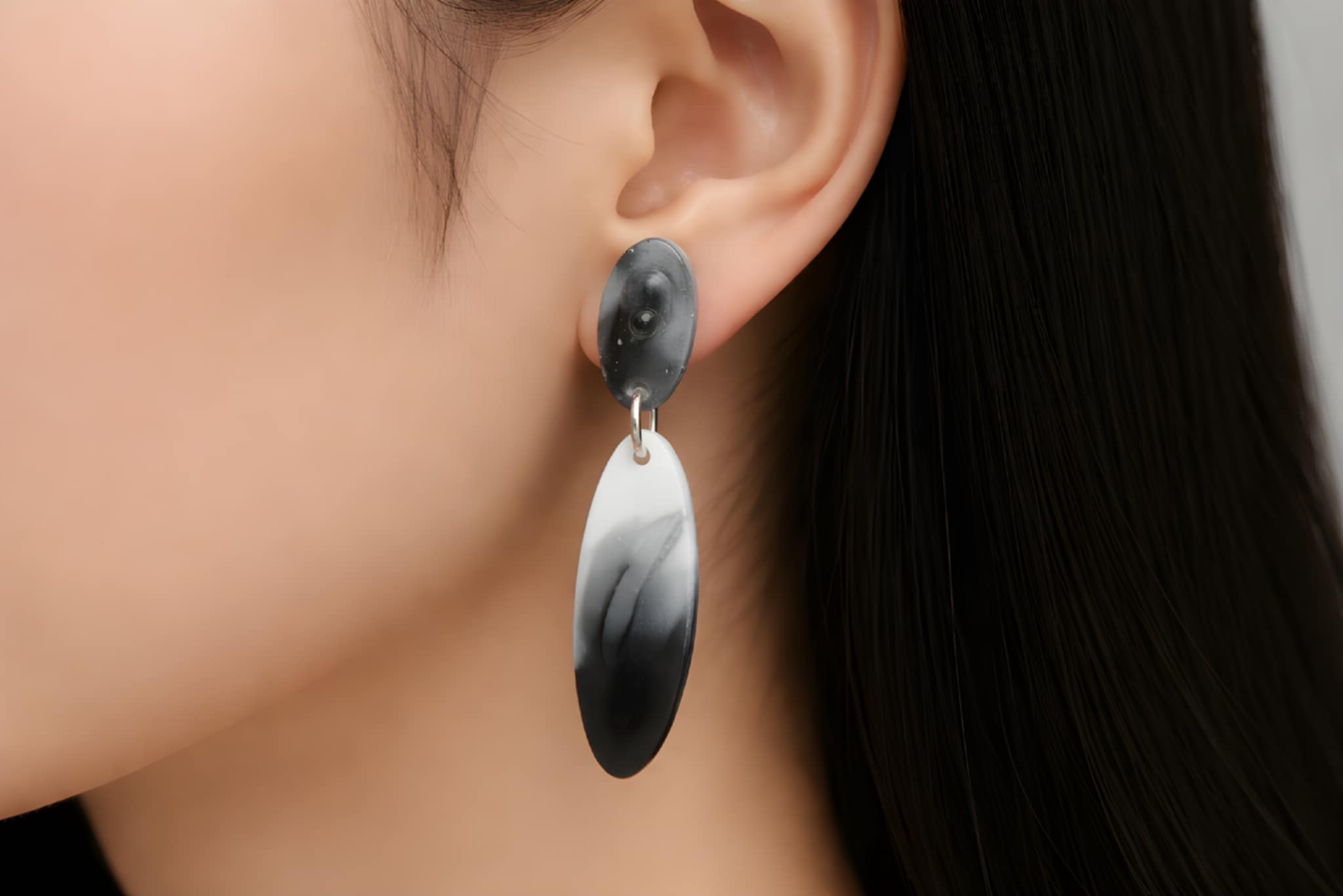 Minimalistische, lichtgewicht oorbellen met een zachte marmerlook in zwart-wit. Met de hand gemaakt van UV-resin, uniek in vorm en patroon. Tijdloos, elegant en perfect voor elke dag ✨