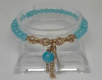 Ontdek de perfecte combinatie van elegantie en speelsheid met deze prachtige armband, versierd met een verfijnde gouden charm. Deze armband is vervaardigd van elastiek, wat zorgt voor een comfortabele en flexibele pasvorm die zich moeiteloos aan uw pols aanpast. De levendige kleur voegt een frisse uitstraling toe aan elke outfit, terwijl de gouden charm een vleugje luxe en verfijning biedt. Of u nu een casual dagje uit heeft of een speciale gelegenheid, deze armband is de ideale accessoire om uw stijl te accentueren.