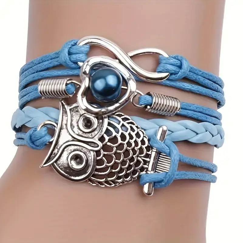 • 4 in 1 Lederen Armband met verzilverde uil Opties selecteren Dit product heeft meerdere variaties. Deze optie kan gekozen worden op de productpagina